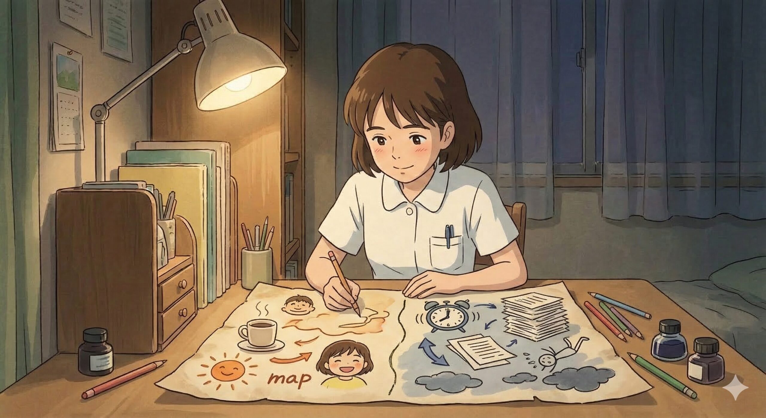 私の場合は「心の余裕」と「生活バランス」でした。ここが決まると働き方の選択がすごく楽になります。