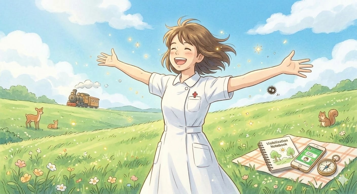 ポイントは「評価しないこと」。ただ今の状態を見える化します。看護師って責任感が強いため、つい「もっと頑張らなきゃ」と自分を責めてしまいがちです。まずは評価を脇に置いて、今の疲れをそのまま認めてあげることが、余白を作る第一歩になります 。